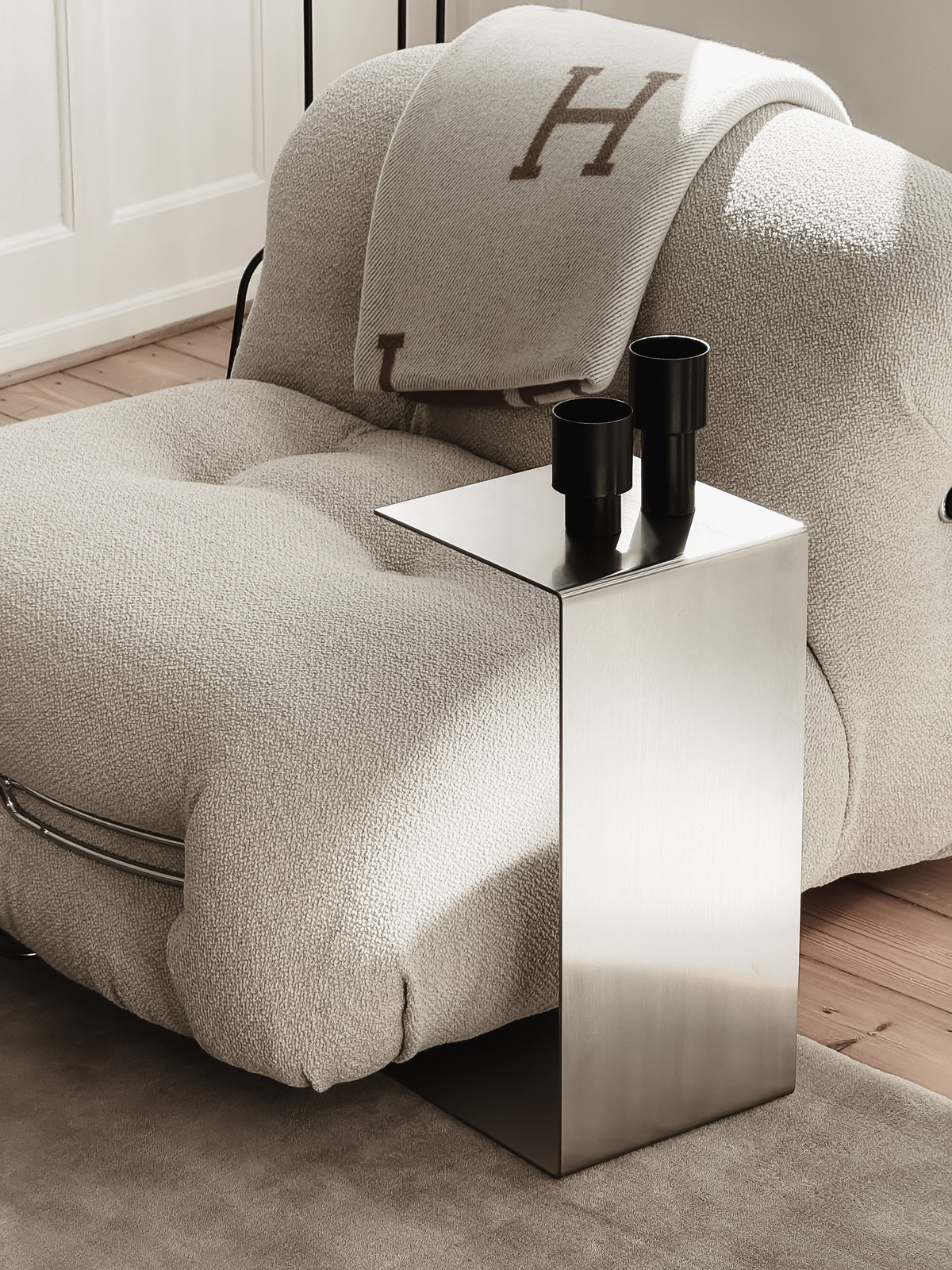 Finish: Stainless steel offers a unique refined brushed finish with a calm, premium expression. Visually stable and timeless, the surface retains its character over time. A quality that lighter metals cannot replicate.