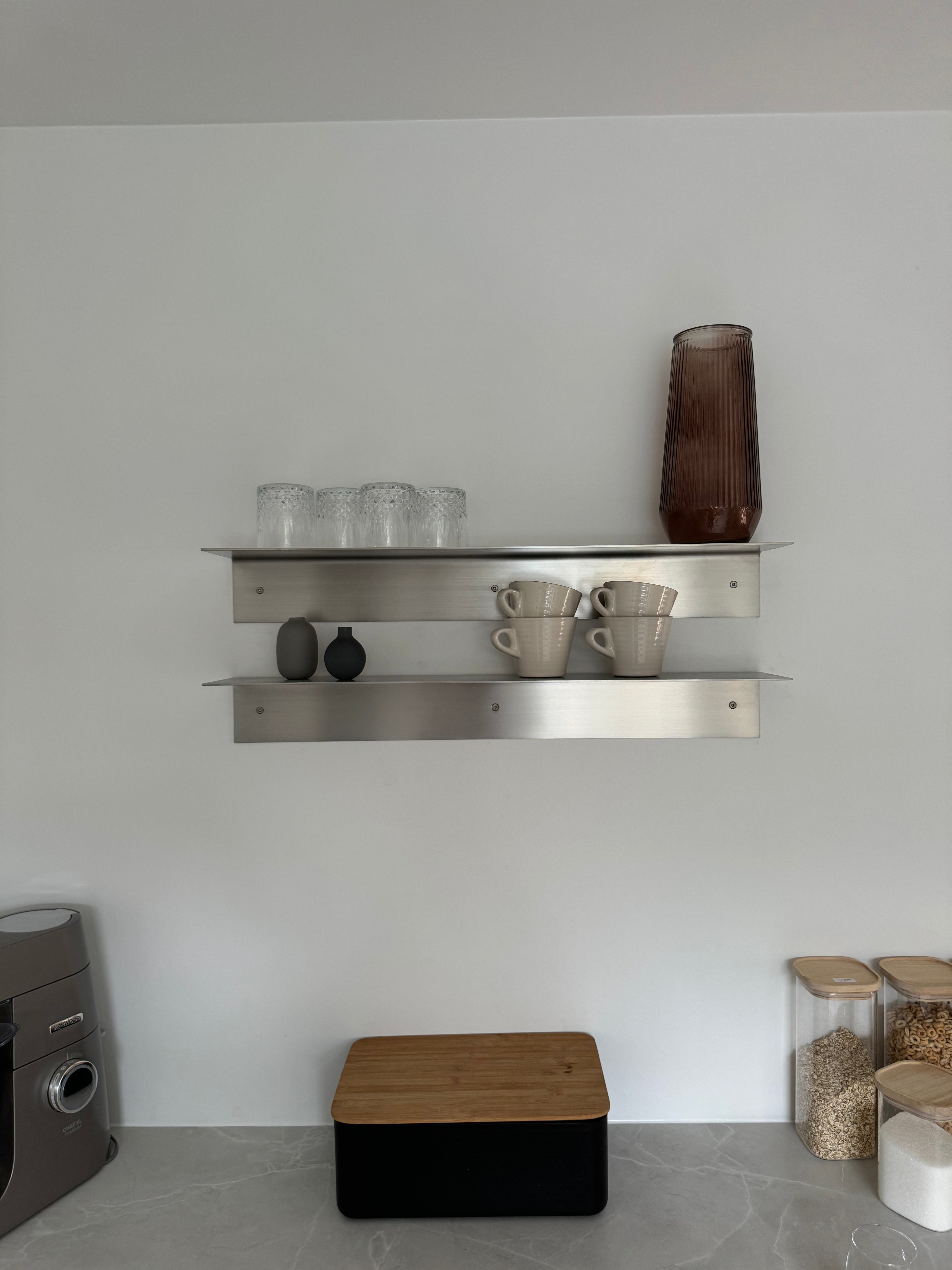 Stålet har en børstet finish, så hylden er glat og dermed nem at tørre af og gøre ren. Se vores fulde rengøring- og vedligeholdelsesguide.