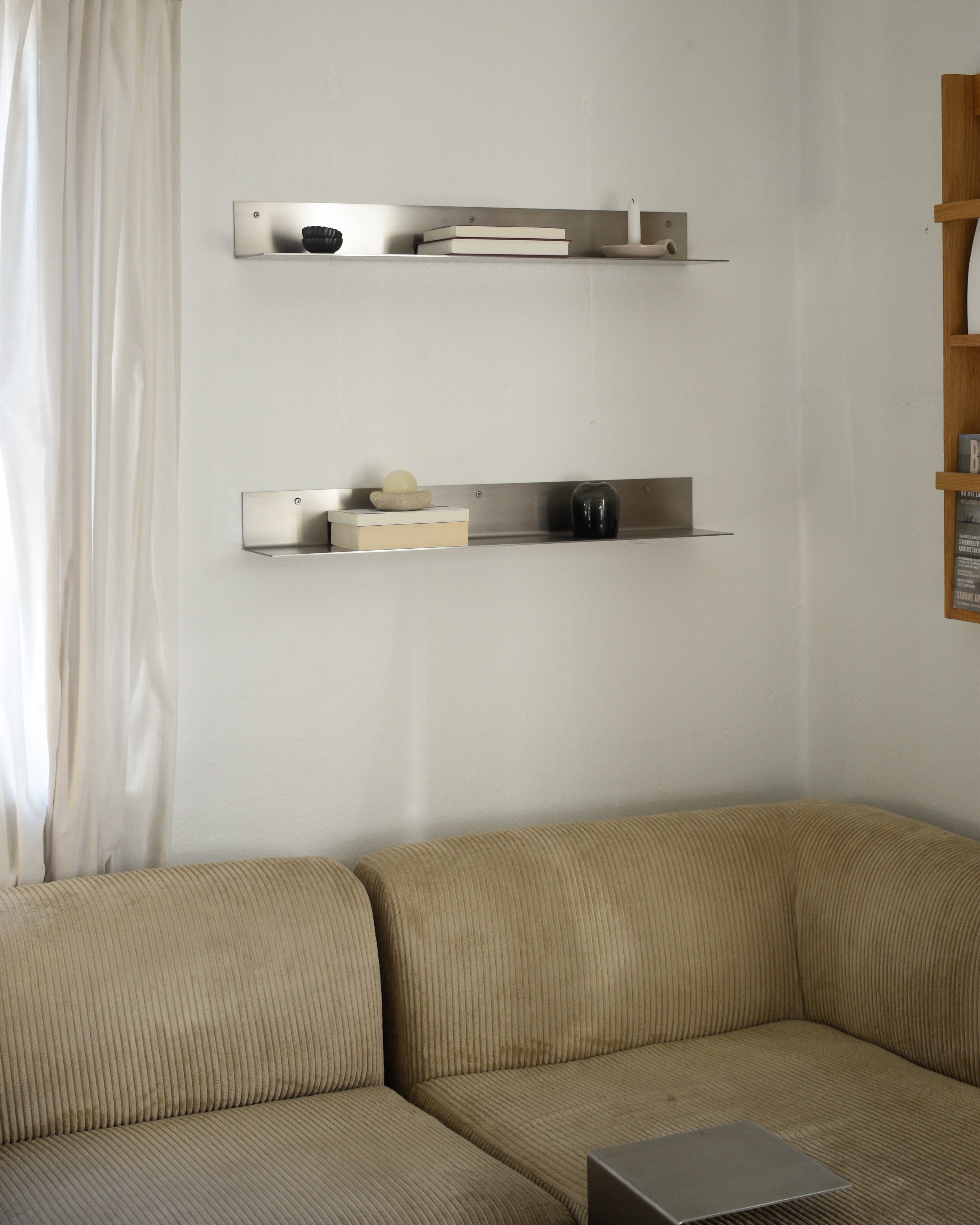 Skagen shelves can be combined in different widths and with other Acier Studio shelves to create a personalised and balanced wall composition. Please reach out if you would like to receive a quote for customized measurements.