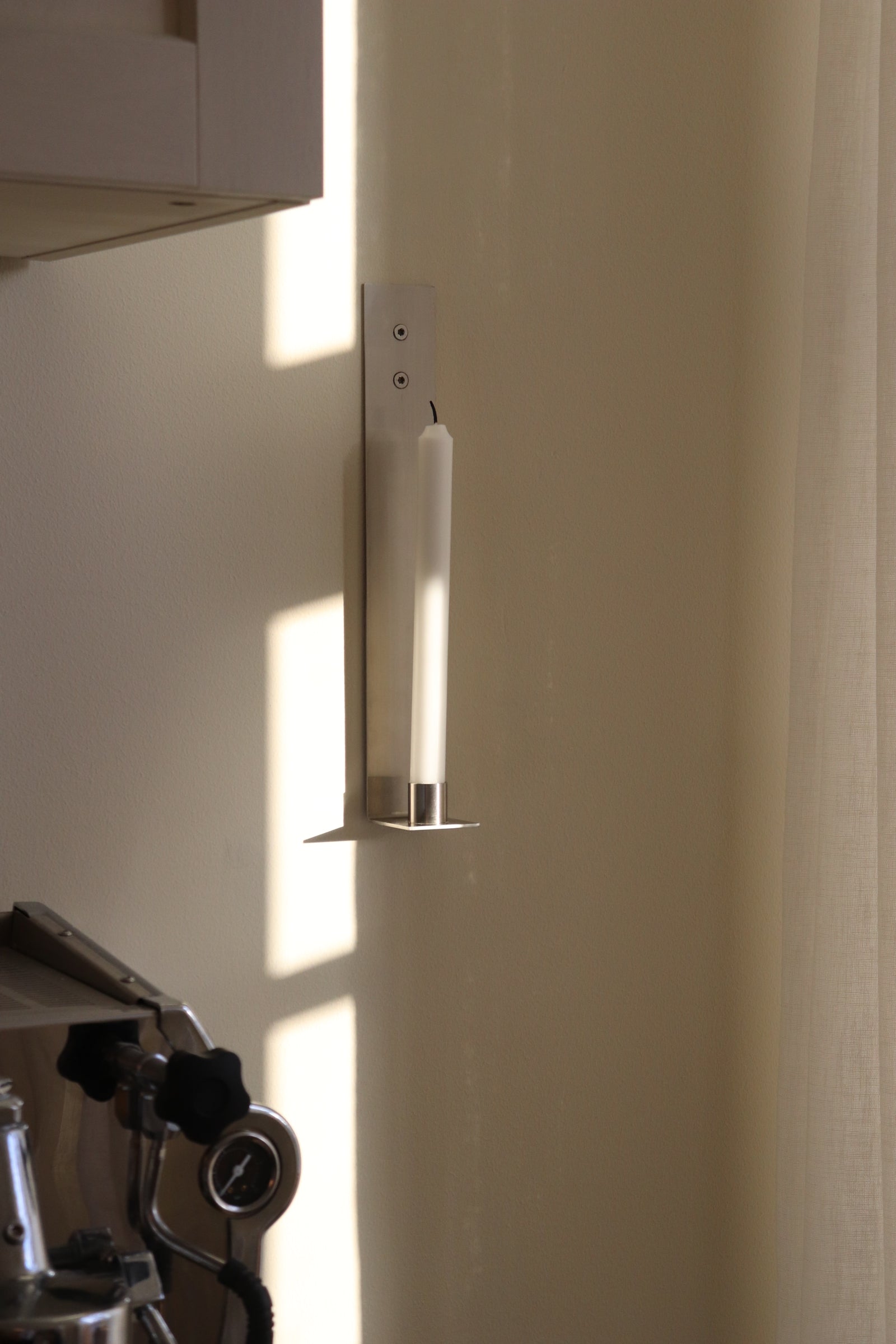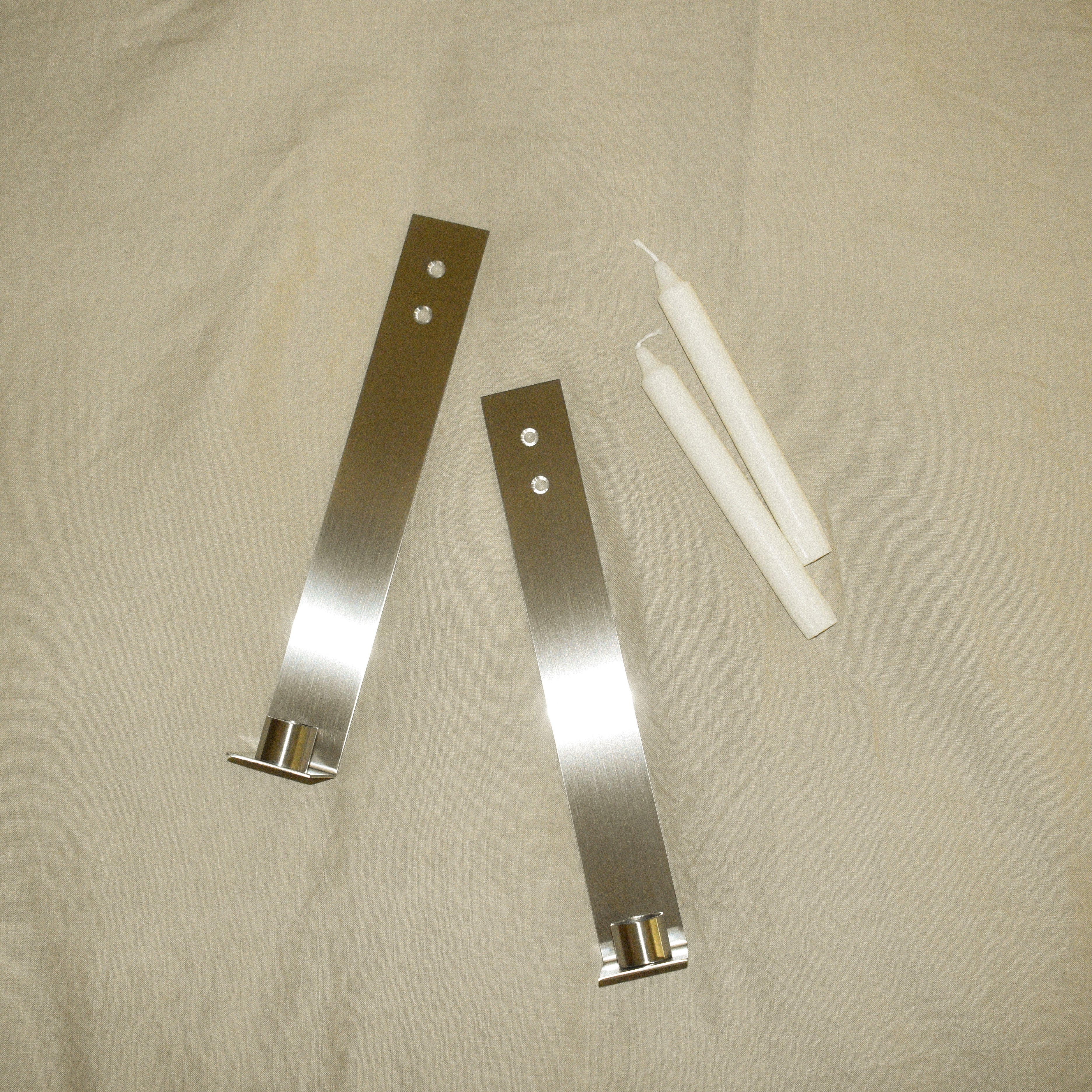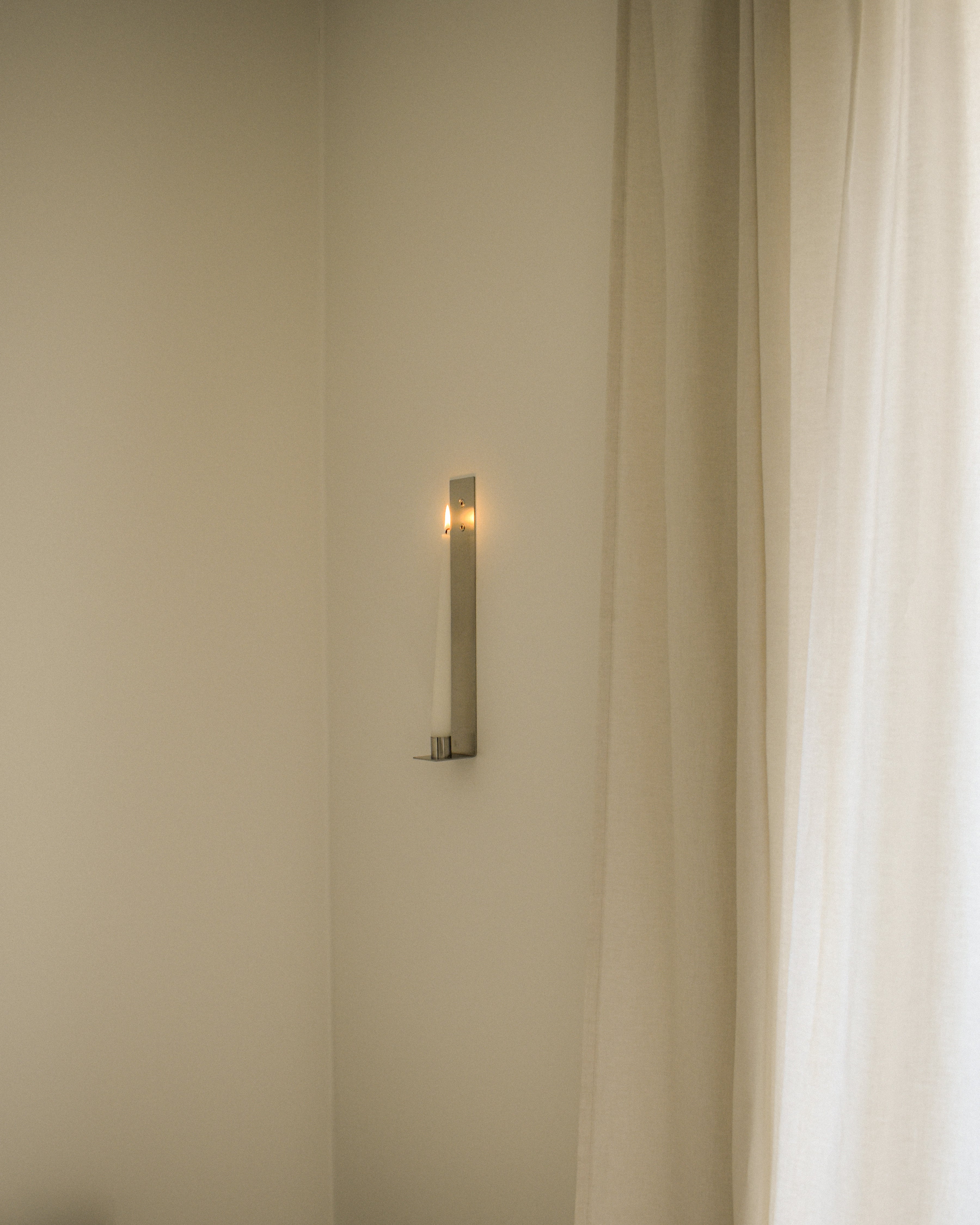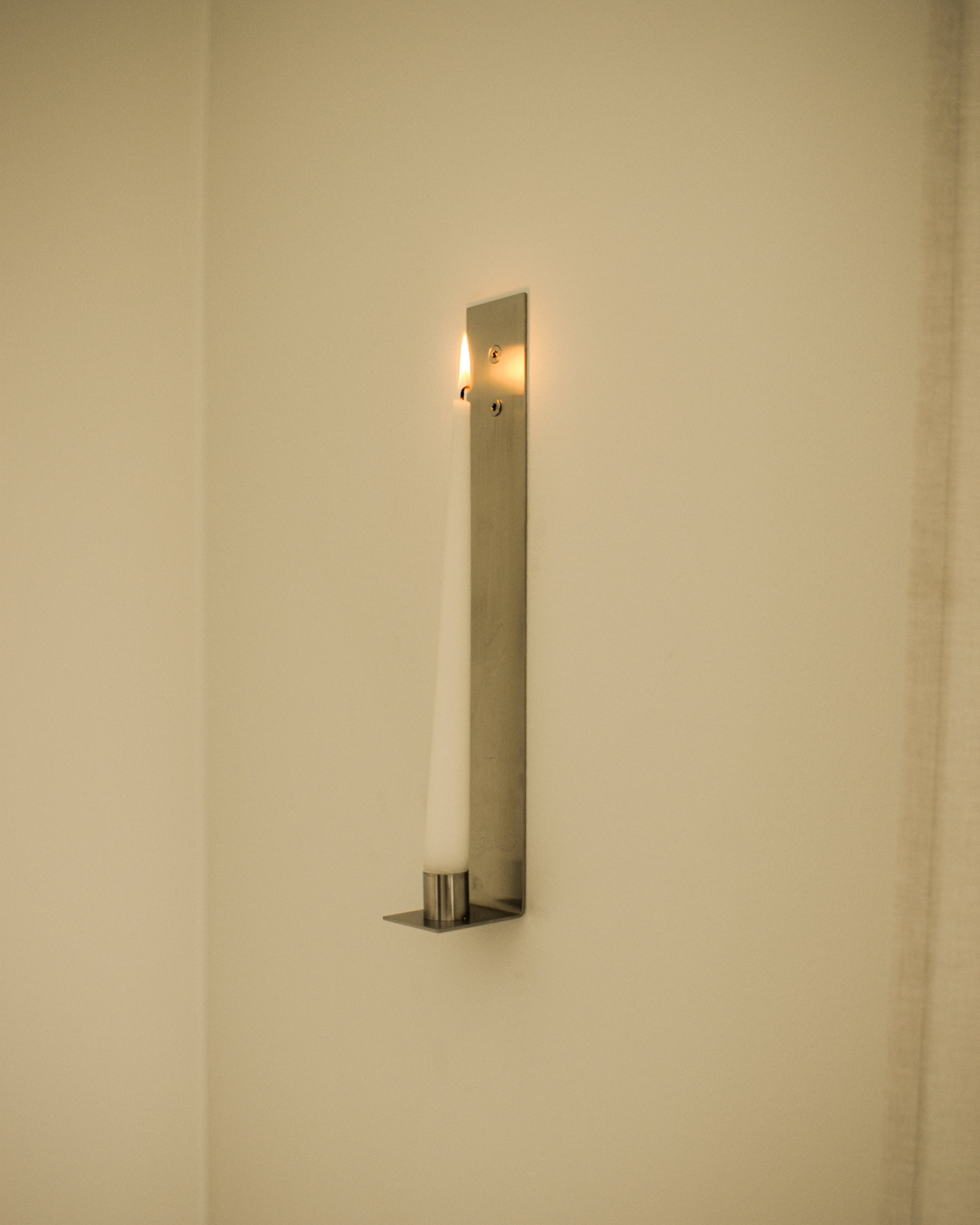 Lysestagen er udarbejdet i rustfrit stål og er et enkelt og smukt element til pynt på din væg. Pynt forskellige rum - din stue, køkken, gang, kontor osv. med lysestagen og skab hygge.